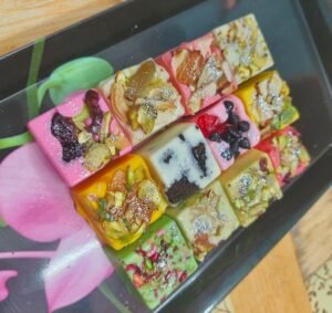 Sudita specializes in crafting a wide variety of customized chocolates, including premium Swiss chocolates. She is also known for creating unique chocolate mithai collections such as Rajbhog, Rasmalai, Rabri Malai, Mawa, Pan Mukwas, and Black Forest inspired chocolates. Alongside chocolates, she also bakes customized cakes like Fruit Cake, Dry Cake, Marble Cake, Butter Cake and many more, blending traditional flavours with modern presentation.